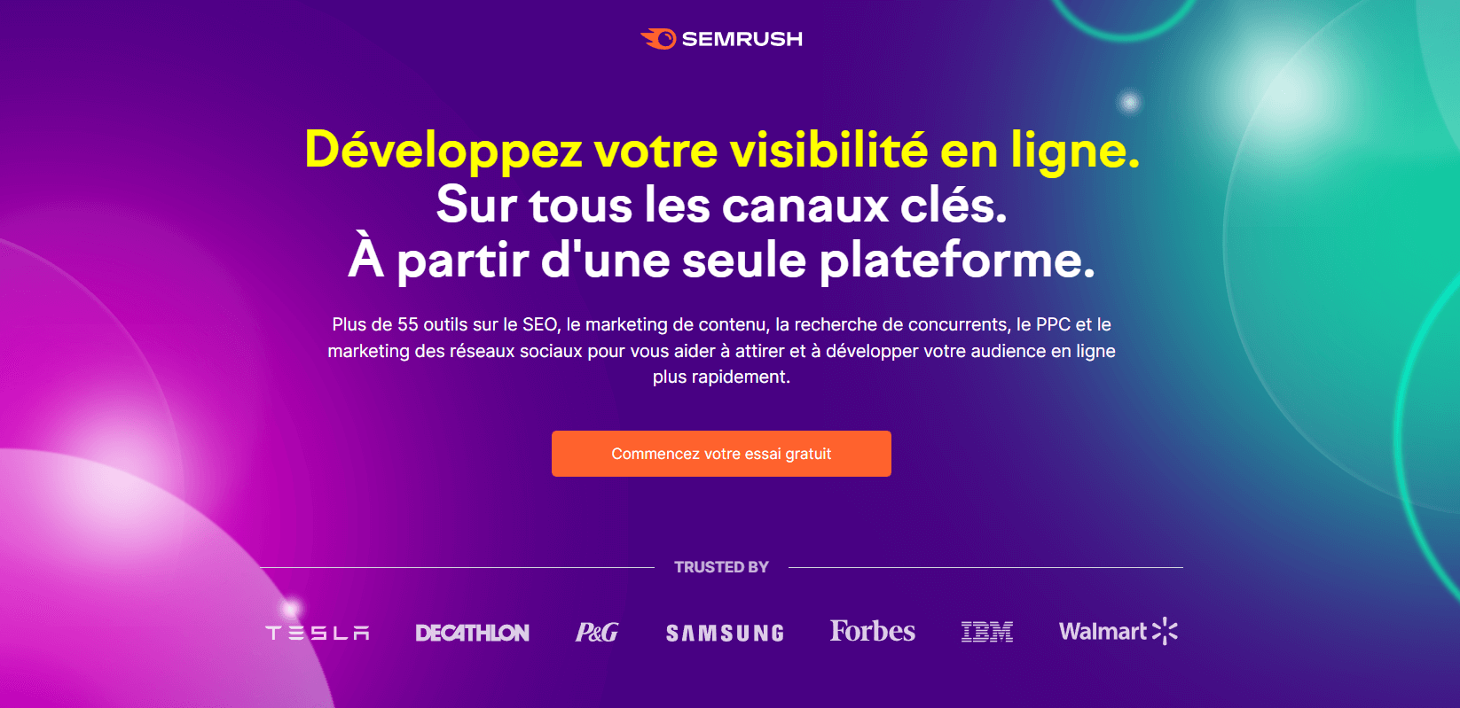 🎯 Exploitez la recherche par mots-clés : avec des outils comme SEMrush, vous pourrez ainsi trouver des expressions recherchées sur YT par les internautes, que vous pouvez ajouter à votre titre ou à votre description.