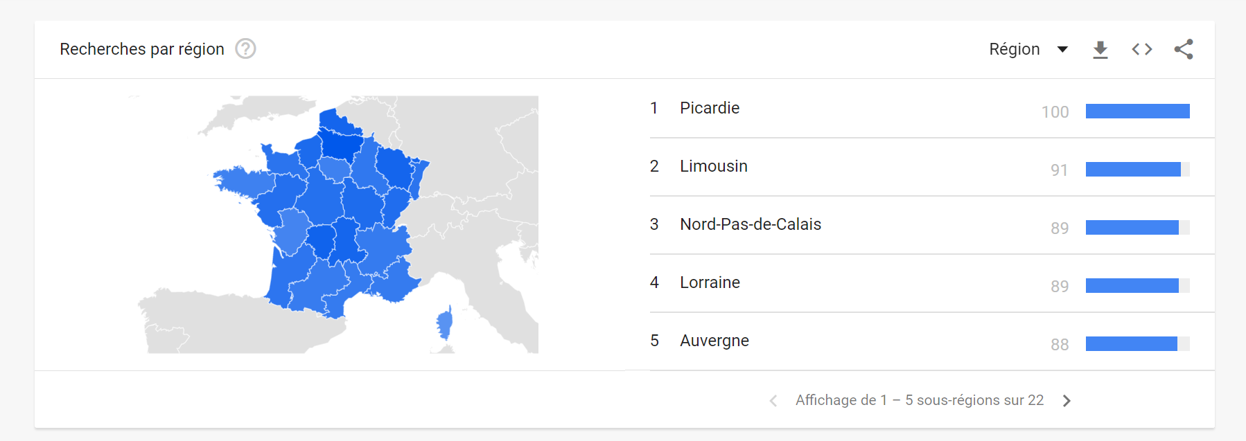 De plus, Google Trends vous permet d’être encore plus précis en ciblant les régions dans lesquelles un produit est le plus recherché.