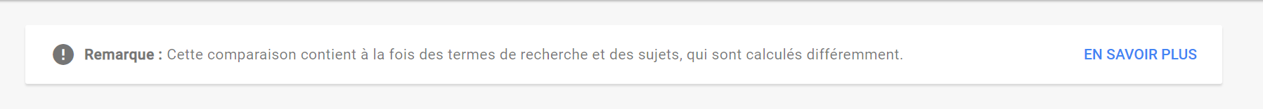 Si les catégories choisies pour les mots-clés que vous souhaitez comparer sont trop éloignées, Google Trends vous affichera un message explicatif.