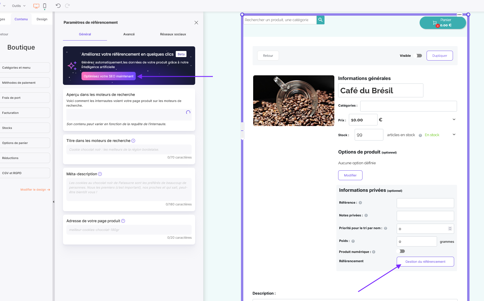 Vous allez ensuite pouvoir travailler le SEO de chacune de vos fiches-produits.
